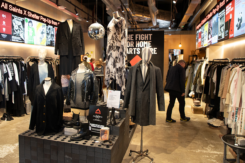 Our journey started in 2021 with a retail takeover in our Coal Drops Yard Boutique and progressed to an AllSaints X Shelter Road Trip in 2022. In a fashion industry first, we hosted a series of AllSaints X Shelter store collaborations in eight locations throughout the UK, selling thousands of pieces of surplus stock donated by AllSaints.